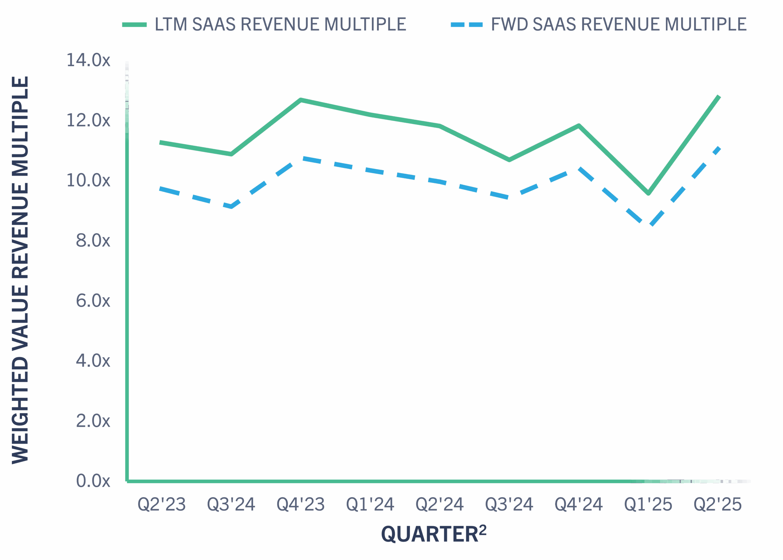 - Reflects the median weighted average revenue multiple of companies within the GC Public SaaS Tracker.