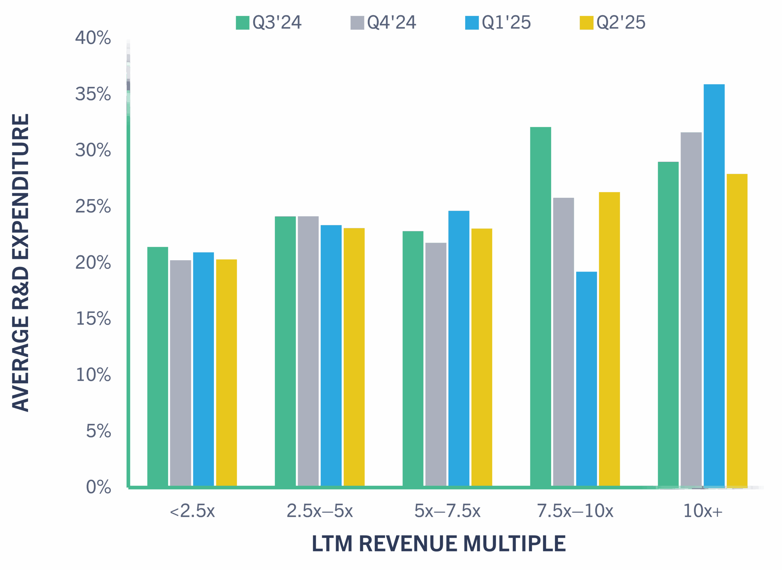 GC Public SaaS Tracker Average R&D Expenditure (%) vs. LTM Revenue Multiple1,2