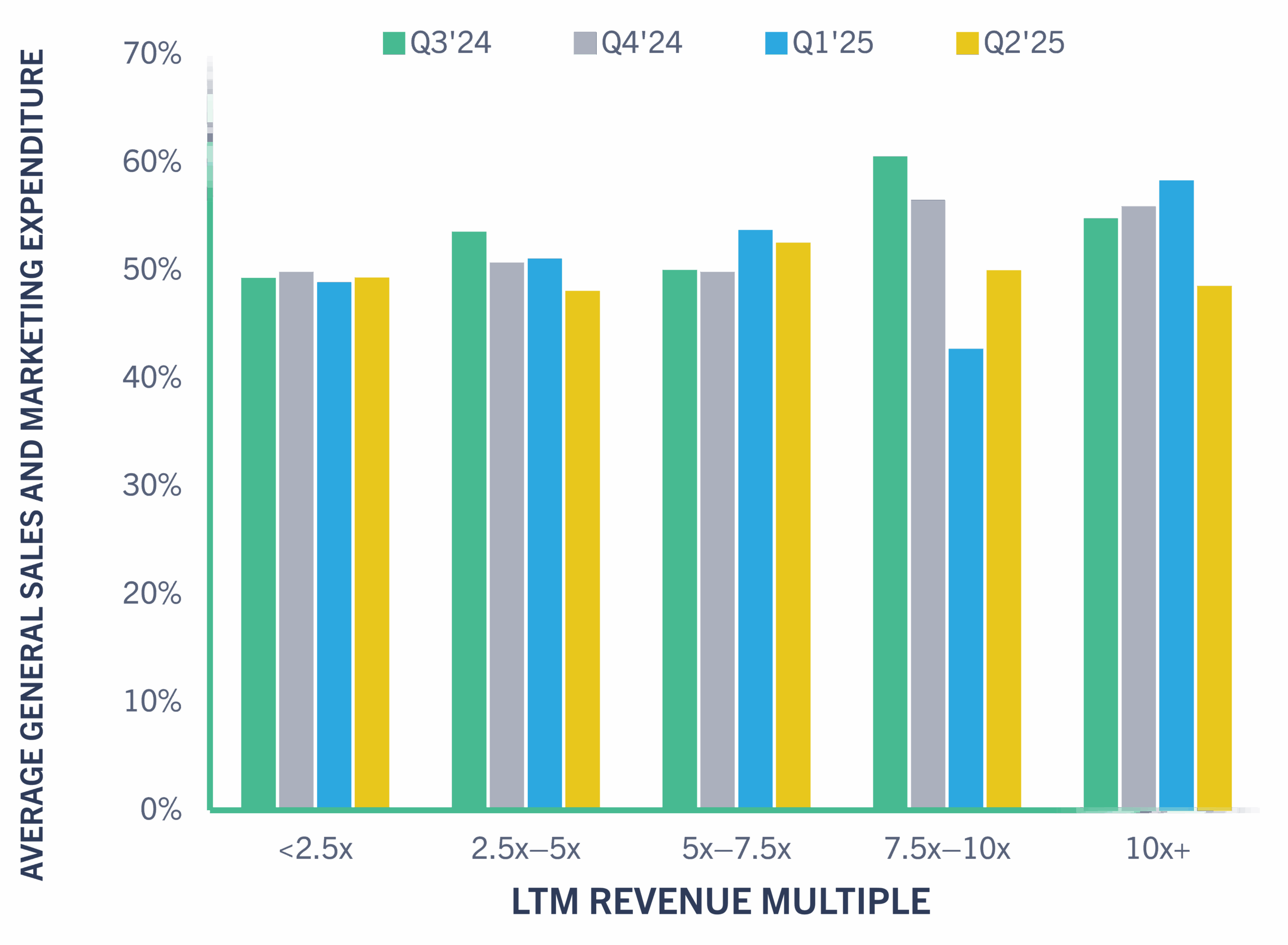 GC Public SaaS Tracker Average Sales and Marketing Expenditure (%) vs. LTM Revenue Multiple1,2