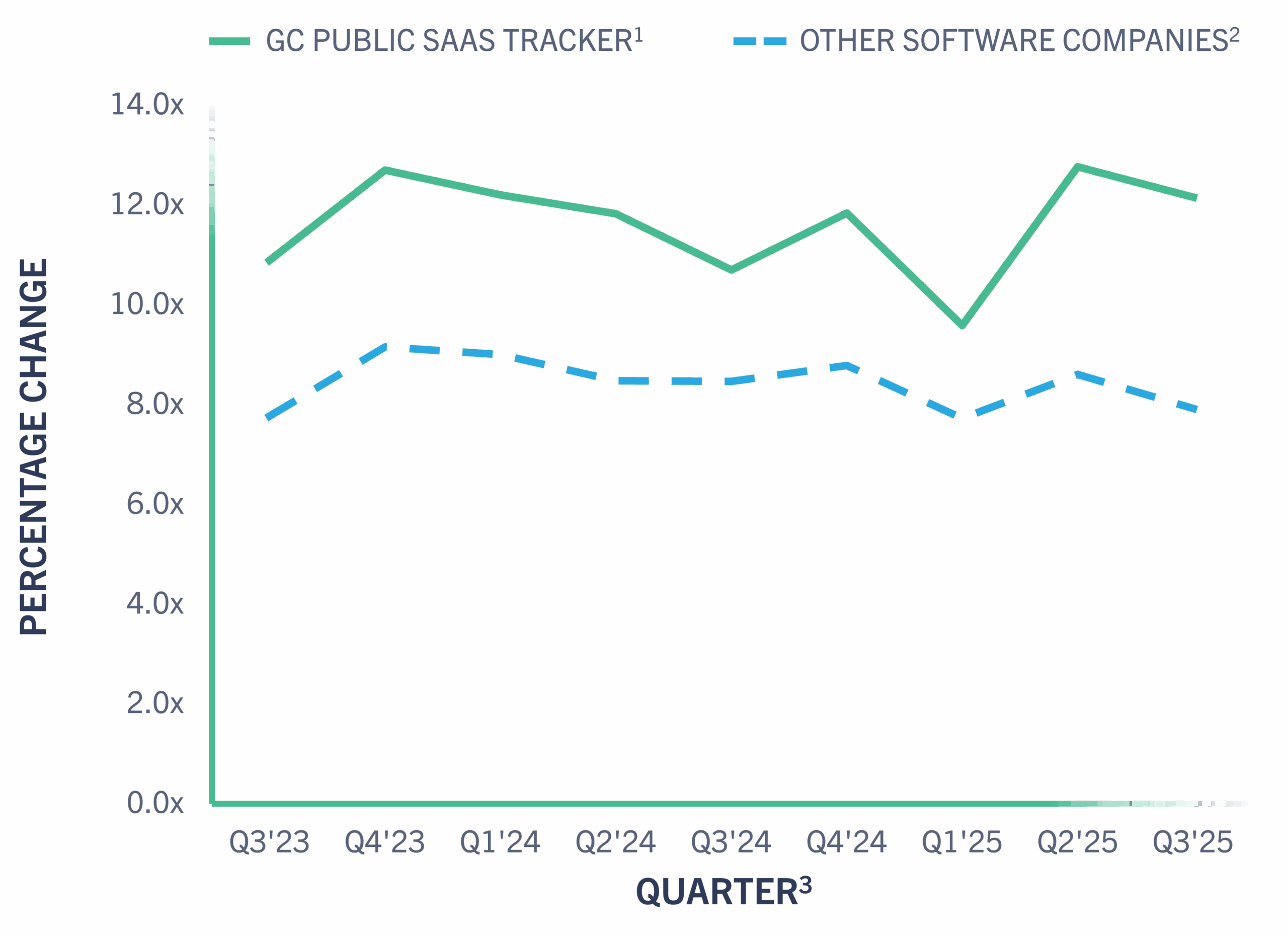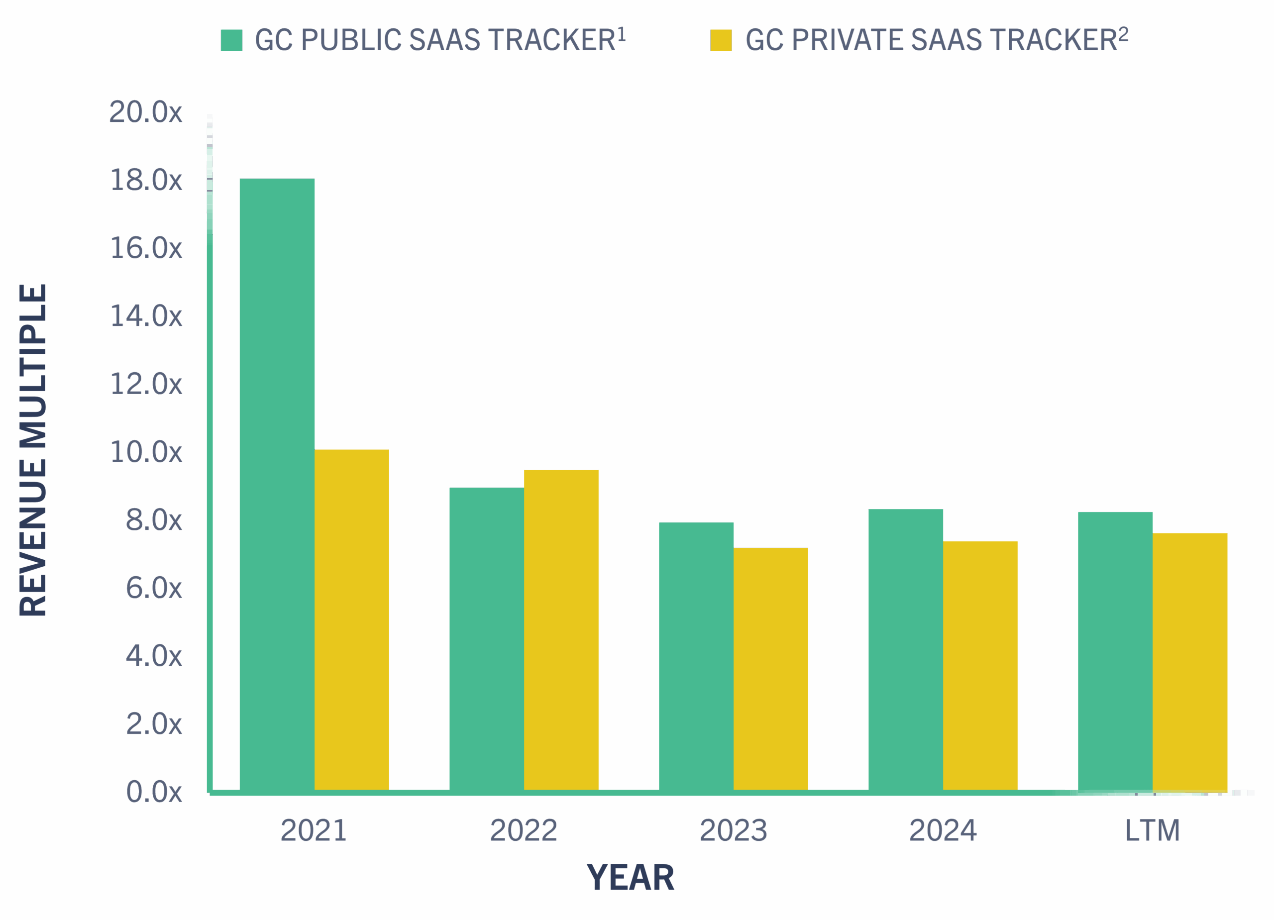 2. Reflects the median revenue multiple of companies within the GC Private SaaS Tracker.