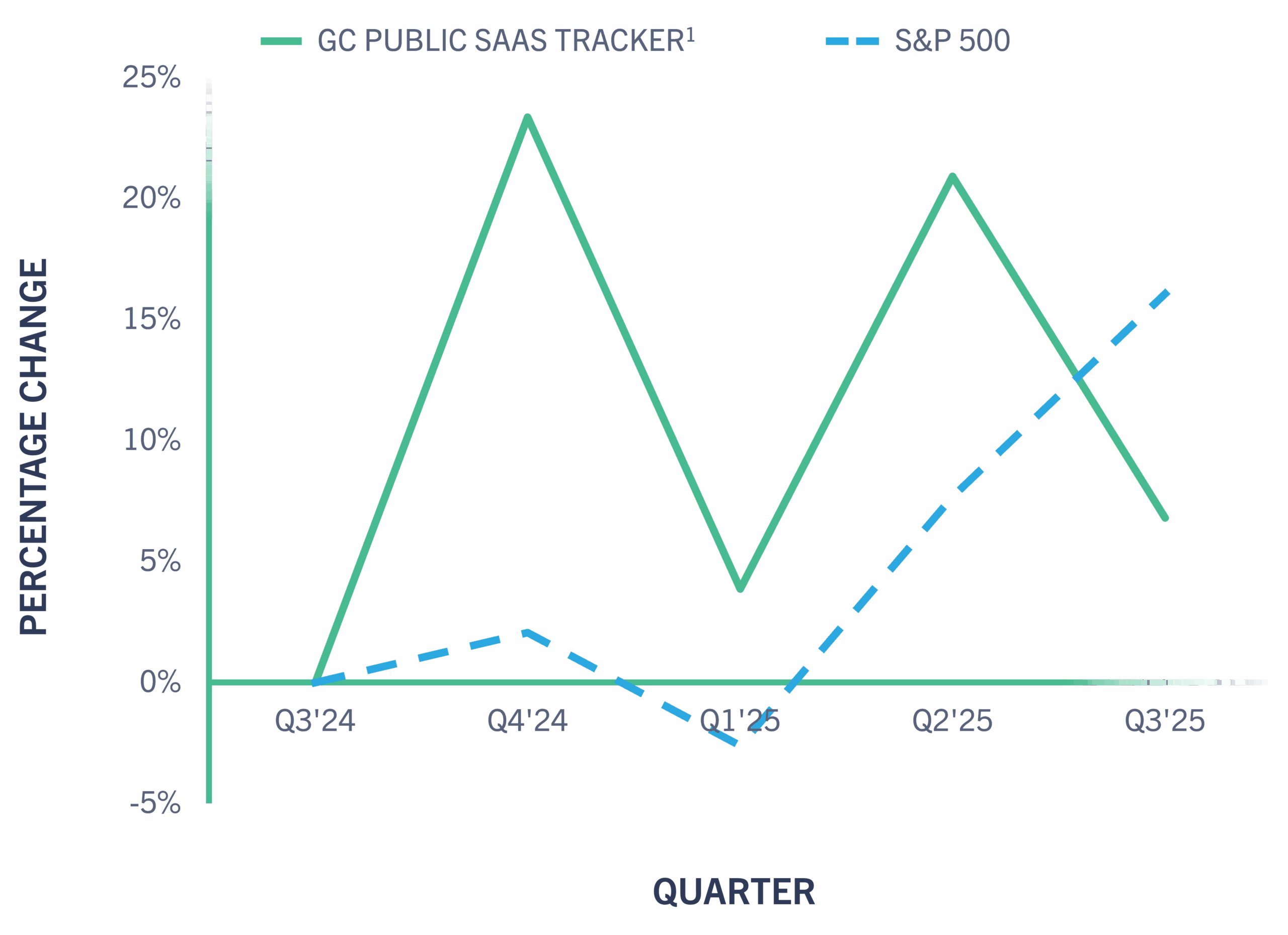 GC Public SaaS Tracker vs. S&P 500 Quarterly Change1