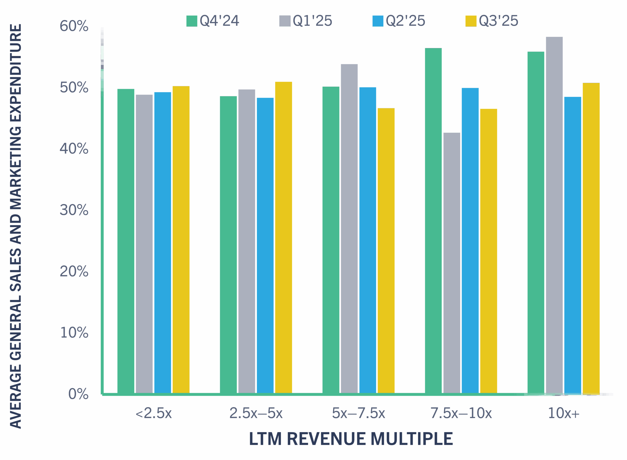 GC Public SaaS Tracker Average Sales and Marketing Expenditure (%) vs. LTM Revenue Multiple1,2